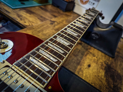 A well needed Spa day at the Fretbuzz Workshed for this Epiphone LP, which had intermittent switching due to a faulty toggle switch, I replaced the 3-way before a full deep clean, fretboard conditioning, fret polish, electrics service and setup with Rotosound 10-46.
