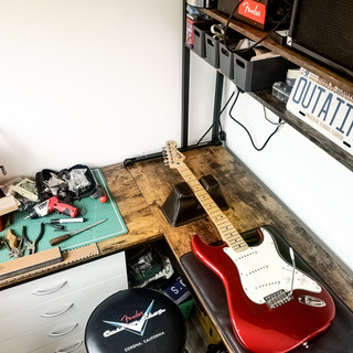 Getting rid of those pesky pitted frets on this Candy Red Strat.