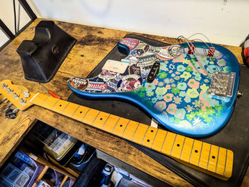 Years of badly placed shims and a slight warp from the 16th fret led to this P-bass choking out in the higher register, I've pressed in some unseated frets, removed the shims, set the correct radius for the action, adjusted the relief for what was a maxed out truss rod - and we have a winner 🎉⚡🎸