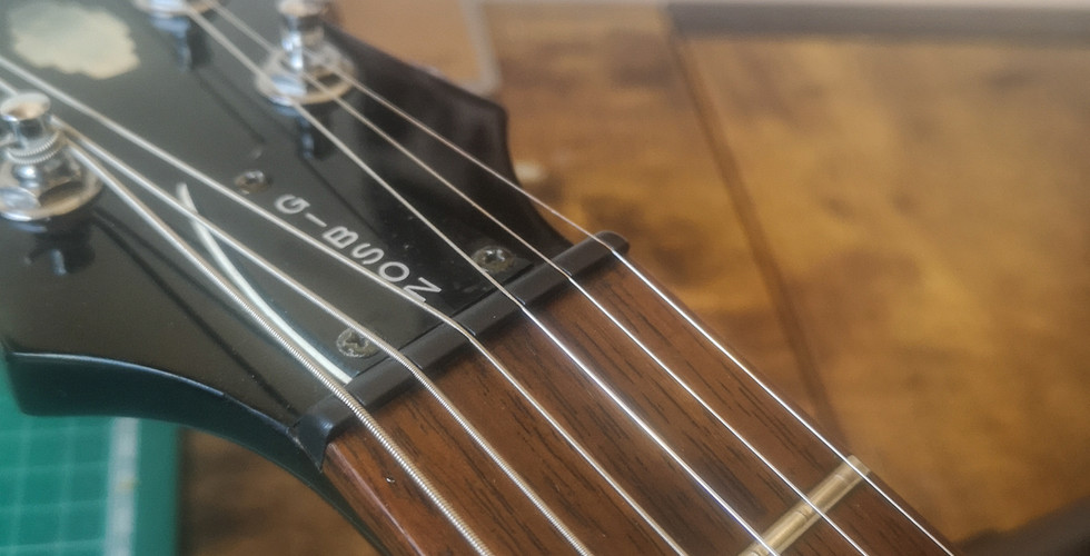 The original nut had worn too low and to keep the aesthetics intact, a Graphtec Tusq was used as replacement. Some work was required for the correct nut slot heights. I've replaced a faulty gunked up Jack Output for a quality Switchcraft one.