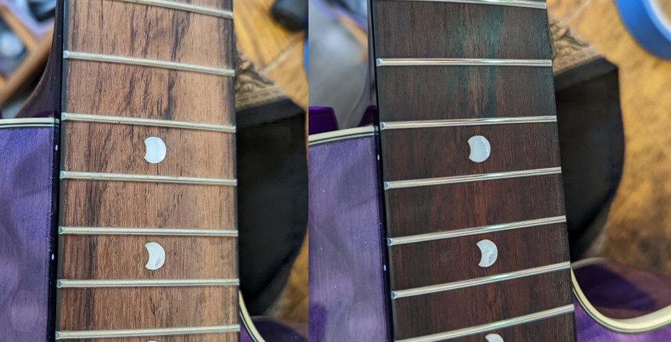 Full fretboard treatments, fret dress and some work to the bridge saddle, and a Setup with D'addario 12's has got this folk machine Gig ready again ✌️